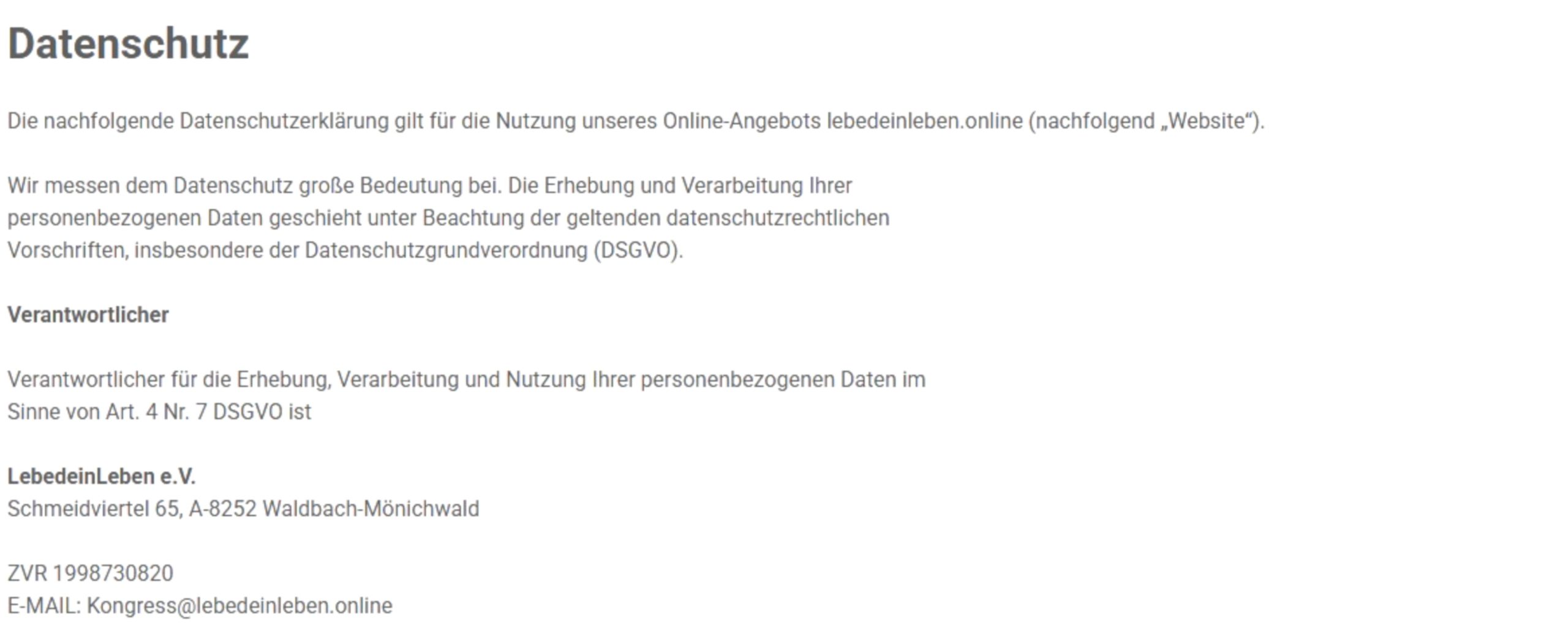 Wir verwenden personenbezogene Daten zum Zweck des Betriebs der Website https://www.lebedeinleben-kongress.de/